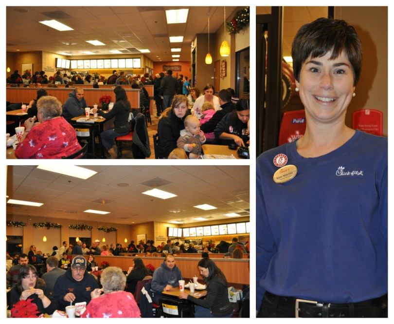 Packed dining room & excellent Chick-fil-A staff member